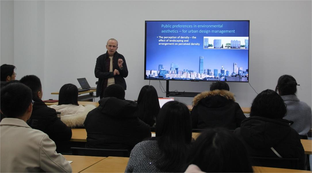 授予仪式之后,John Zacharias教授围绕关于人类在空间行为和感知对交通系统环境规划的影响,以及建筑环境的改变如何影响人们在原地和出行方式的决策等话题进行学术报告,并与参会学生进行了交流。