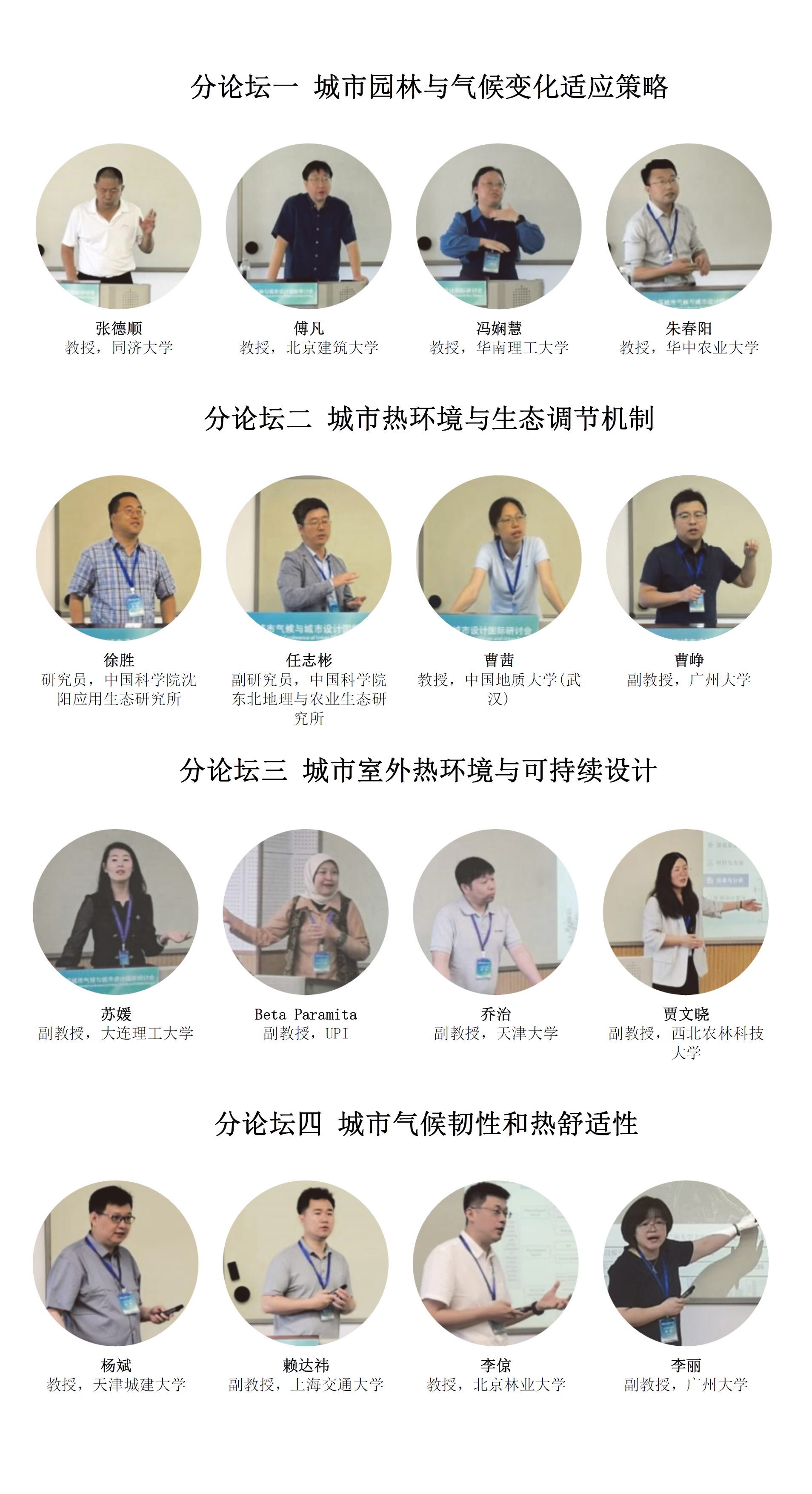 会议邀请了Hashem Akbari教授、高伟俊教授、Andreas Matzarakis教授、何兴元研究员、顾兆林教授、曹世杰教授、杭建教授、冷红教授、刘颂教授、赵立华教授、关成贺研究员、罗志文教授、赵敬源教授、袁超副教授等14位具有国际影响力的专家学者作主旨报告,分别从城市形态的气候驱动作用、人体热舒适评估与适应、面向气候变化的城市设计等多个维度,提供了深刻洞察与创新前沿。