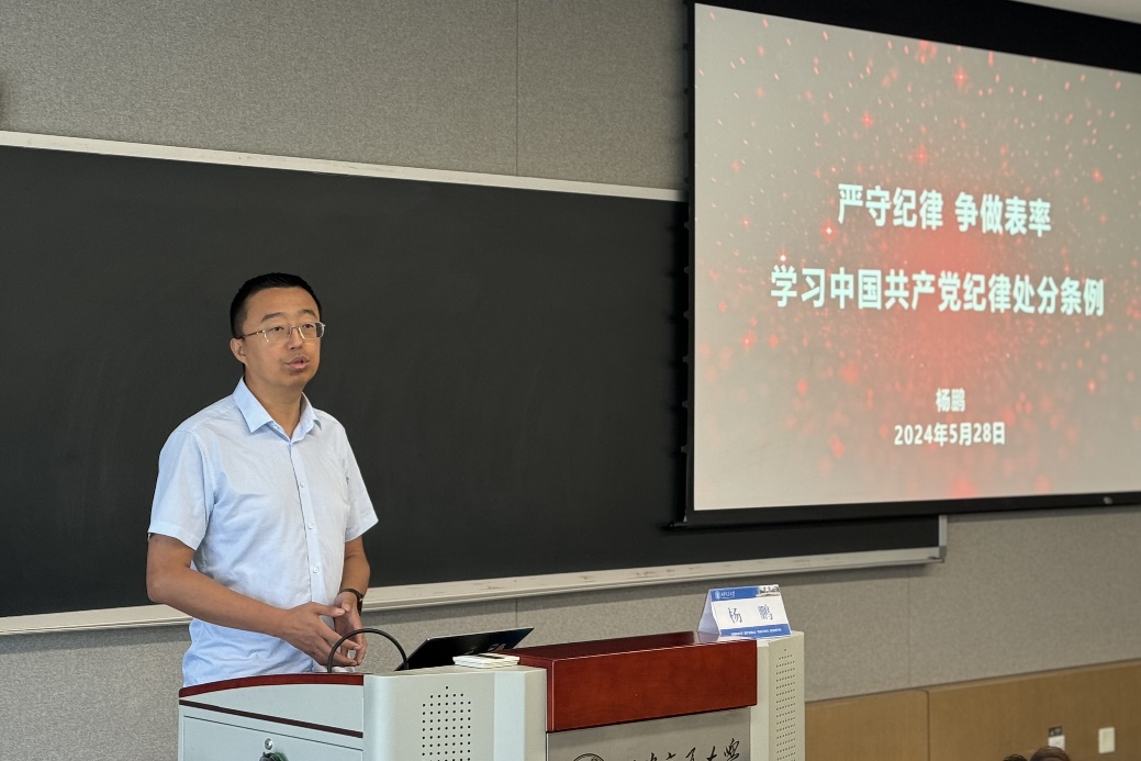 杨鹏作“严守纪律 争做表率 学习《中国共产党纪律处分条例》”专题辅导报告。他指出,在全党开展党纪学习教育,是加强党的纪律建设、推动全面从严治党向纵深发展的重要举措,要把学习贯彻《条例》贯穿党纪学习教育始终,准确把握《条例》的主旨要义和内涵要求,建立常态长效的学习机制,答好党纪学习教育的政治答卷;要深刻理解把握《条例》贯穿的重大原则,把严明政治纪律摆在首位,学懂弄通、熟练掌握,真正把纪律规矩转化为政治自觉、思想自觉、行动自觉。