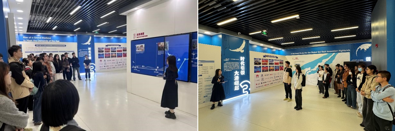 在参观数字展厅过程中,新港青年讲解员、硕4190党支部副书记王笑溪带领同学们充分了解了交大西迁的校史校情,一段段感人至深的历史故事,一张张珍贵的老照片,生动地展现了老一辈交大人“胸怀大局、无私奉献、弘扬传统、艰苦创业”的伟大精神。同时,她还带领大家深入学习了创新港建设和发展理念,涵盖“使命感召应运而生”“国家样板全球高地”“时代引领大港崛起”“创新引擎科研集群”及“扬帆致远世界之光”五大方面。