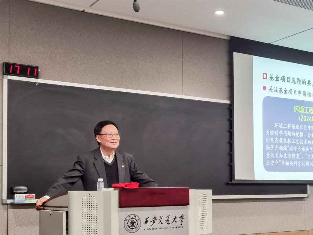 第二场报告围绕国家自然科学基金申报方法展开。王晓昌教授基于国家政策导向,结合自身申报经历与多年的项目评审经验,以环境学科为例,剖析了基金项目选题的热点方向,并深入浅出地讲解了基金申报书的撰写策略。为广大教师提供了先进的申报思路及写作规范,有助于基金申报工作的稳步开展。