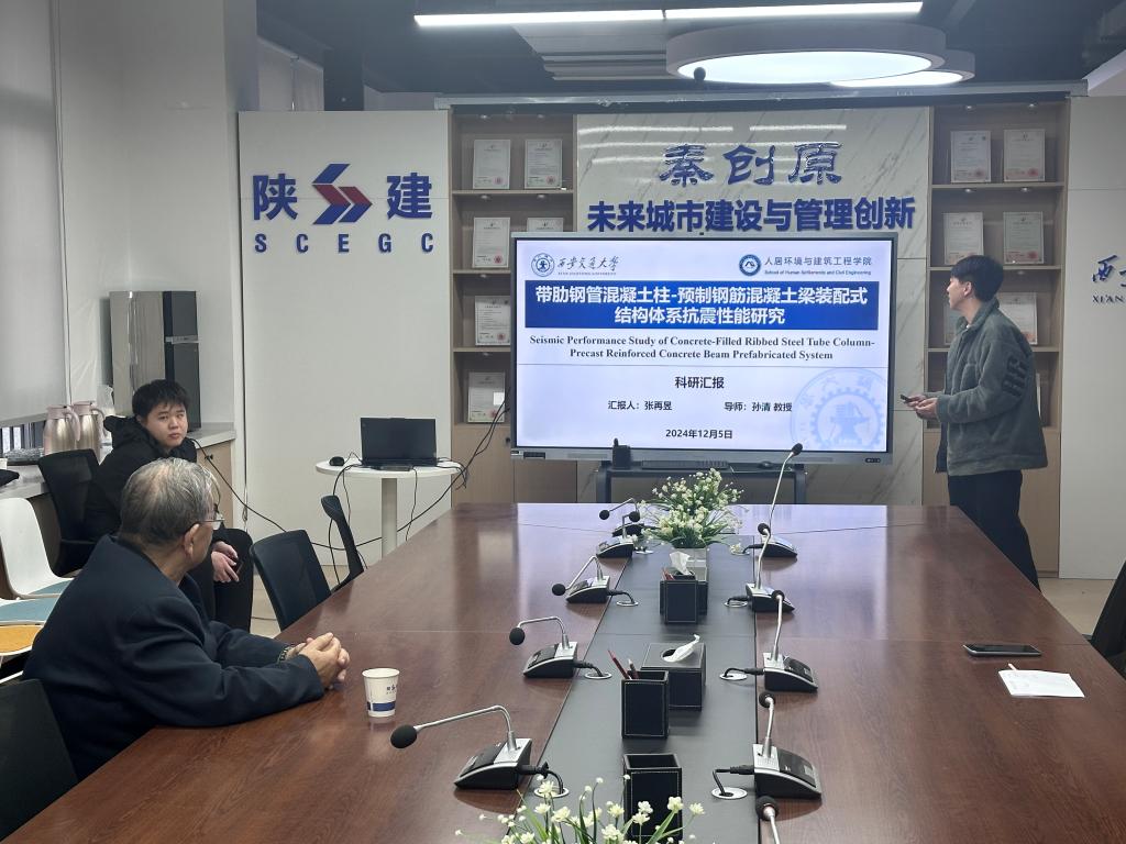随后,基础设施智慧运维与防灾减灾团队向周丰峻院士汇报了团队在装配式结构与输电塔防灾领域的最新研究进展。周丰峻院士对团队的研究成果给予了高度评价,并提出了宝贵的指导意见。他强调,土木工程相关研究应紧密围绕国家重大安全需求和防灾减灾领域的实际工程问题,明确关键需求,突出特色,进一步凝练科研方向,力求在关键技术领域实现突破。