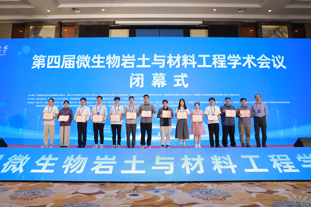 会议闭幕式由会议组织委员会主任、西安交通大学人居环境与建筑工程学院王剑云教授主持,依次进行了《Biogeotechnics》最佳论文奖、第四届微生物岩土与材料工程学术会议研究生论坛优秀报告奖等颁奖仪式,由清华大学程晓辉教授担任颁奖嘉宾。