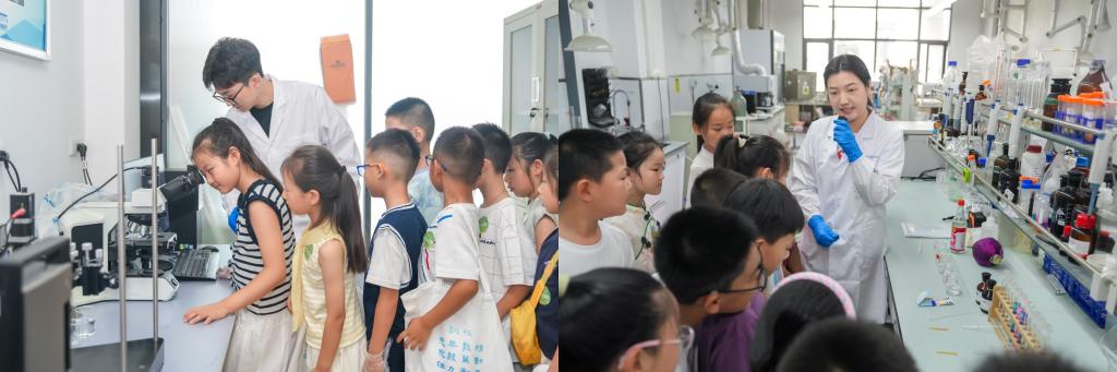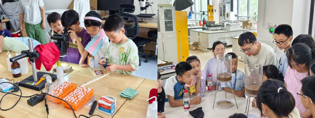 专家讲堂结束后,孩子们集体合影留念,随后在志愿者的带领下,从涵英楼步行至泓润楼,开启“走进实验室”环节。在建筑与土木类实验中,孩子们通过VR眼镜“穿越”至经典建筑现场,亲手触摸细菌矿化修复的混凝土试块,体验土壤透水性实验的趣味。环境类实验室通过“清水小魔杖”酸碱滴定实验、“碳酸钙晶体观察”等项目,让孩子们直观感受化学与生态的奇妙反应。完成全部实验后,孩子们集齐印章并领取专属学员证书,为这场科学探索之旅留下珍贵的纪念。