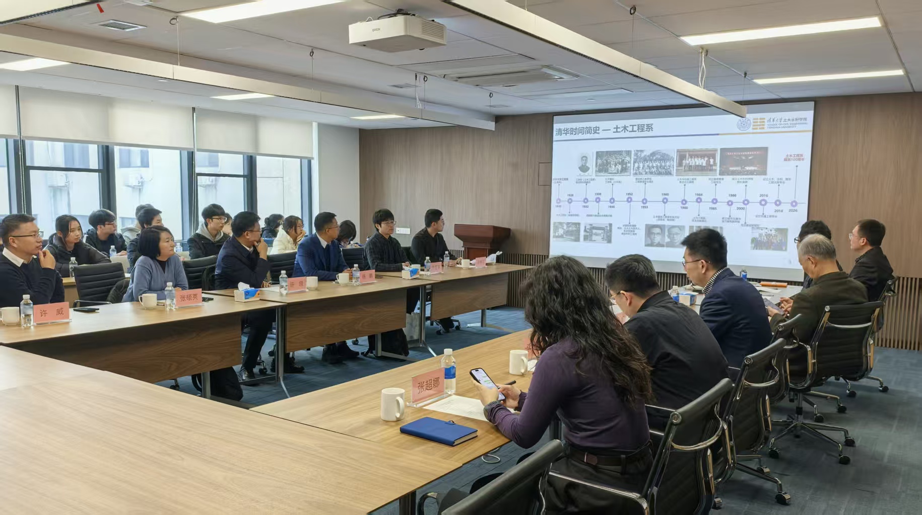 当日上午,师生一行首站抵达清华大学土木水利学院,一场聚焦育人与发展的深度座谈如期举行。清华大学土木水利学院院长吴璟、教授方东平、副院长李萌、土木系副主任刘宇飞、院办主任郑伟、学生校友事务主管张超娜与西安交大师生齐聚一堂,围绕学院学科建设现状、新工科育人模式创新、学生就业趋势研判及行业人才需求等核心议题,展开了坦诚而热烈的交流。