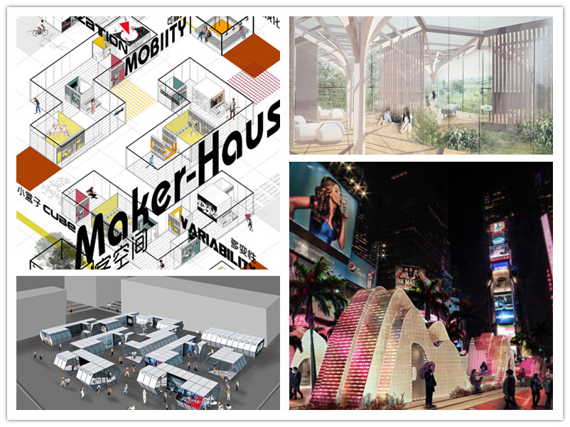 展示的7组作品各有特色:“Maker-Haus移动X+创客空间”采用包豪斯风格极简玻璃外墙,内部基于单元组装的多样空间为课外兴趣班等多种创客提供定制的空间服务;“城市补丁enzyme”采用小巧的曲面外形单箱体结构,内部配合灵活多样的折叠家具,为空间使用者提供不同的使用需要;“城市森林”设计了树状单体,通过灵活拼接形成外观新颖的空间“森林”,为多样的城市文化活动提供通透、舒适的使用空间;“多功能可移动空间”采用多边形折板结构,通过灵活的拼接和组合模式,为各种广场展示活动提供方便快捷的空间服务;