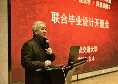 今年的联合毕设开题会共持续3天。3月4日上午,联合毕设开幕式在西安交通大学兴庆校区教2-1400教室举行。西安交大教务处处长徐忠锋教授、西安灞河新区管委会国有资产管理有限公司投资拓展部畅龙部长、西安交大人居学院党委书记杨鹏、西安交大人居学院常务副院长顾兆林教授、长安大学建筑学院副院长刘启波副教授、西安交大人居学院建筑学系系主任陈洋教授出席了开幕式。开幕式由人居学院建筑学系副系主任翟斌庆教授主持。徐忠锋教授在致词中,强调了西安交大对不断提高本科教学质量的重视,以及学科交叉对教学改革与创新的重要性。顾兆林教授介绍了人居学院的概况,并表达了人居学院对此次联合毕业设计活动的大力支持。陈洋教授介绍了建筑学系近年的快速发展,并表达了与兄弟院校不断加强交流的愿望。刘启波副教授介绍了西部九校教学联盟联合毕业设计活动的发展历程,并表达了对本次联合毕设的美好祝愿。当天下午,九校师生共赴纺织城进行实地调研,对纺织城基地环境进行深入踏勘。