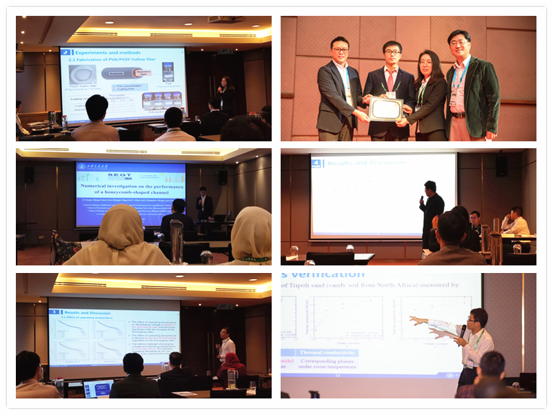6名硕博生分别作了口头学术报告,包括锂离子电池电-热性能研究、锂离子电池热导率研究、蜂窝状微通道冷板强化换热研究、岩土(固体-液体-气体)有效热导率理论模型研究及中空纤维复合膜的强化传质研究。其中,博士生贾国圣的题为“A New Analytical Model for the Estimation of Three-phase Rock-soil Thermal Conductivity for Geothermal Utilization”的学术报告,提出了用于预测岩土有效导热系数的三维物理模型,对中深层地埋换热系统的性能预测评估具有实际工程价值,该论文被会议学术委员会评选为优秀论文(Best Paper)。