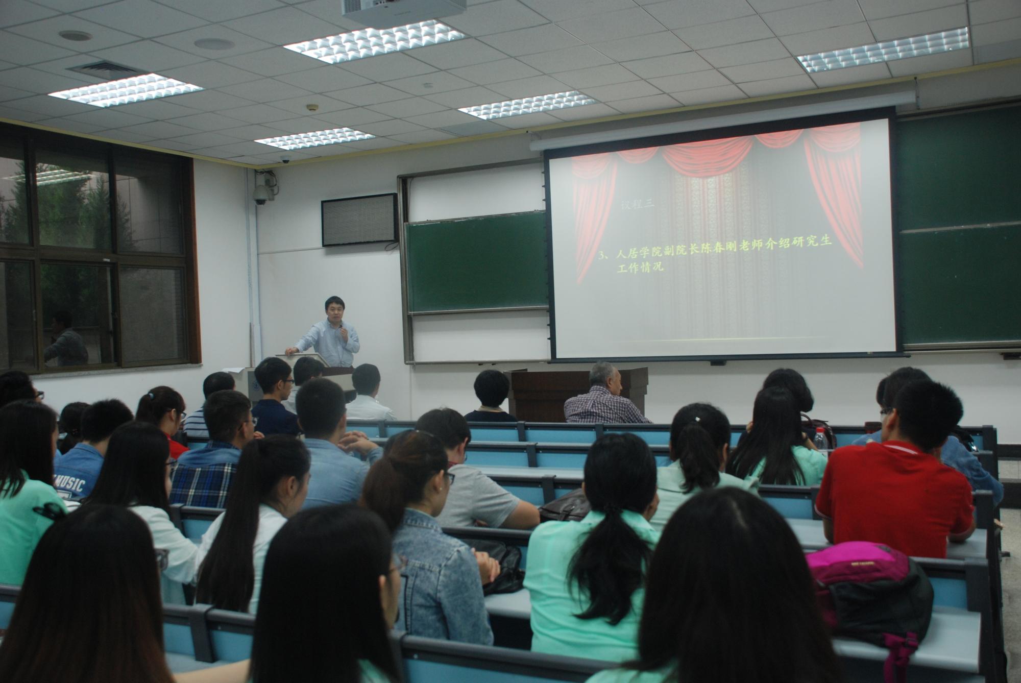 陈春刚副院长全面介绍了学院的研究生工作情况,从学科发展、师资力量、研究领域方面等进行了介绍。最后他强调,学院会在各个方面改进,加强校企合作,全面提升学院的资源力量,做好研究生培养工作;同时也希望研究生主动了解学院情况,从被动到主动的思想和工作调整,迈出自己人生的一大步。