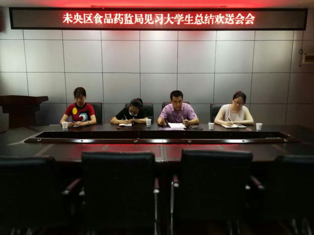 为期一个月的实习时光在指尖轻松滑过,又到了离别的时候。8月16日上午,政府见习总结欢送会在未央区食品药品监督管理局举行,我院团工委书记汪毅香、未央区食品安全委员会魏家良,未央区食药局办公室主任罗希出席了本次会议。
