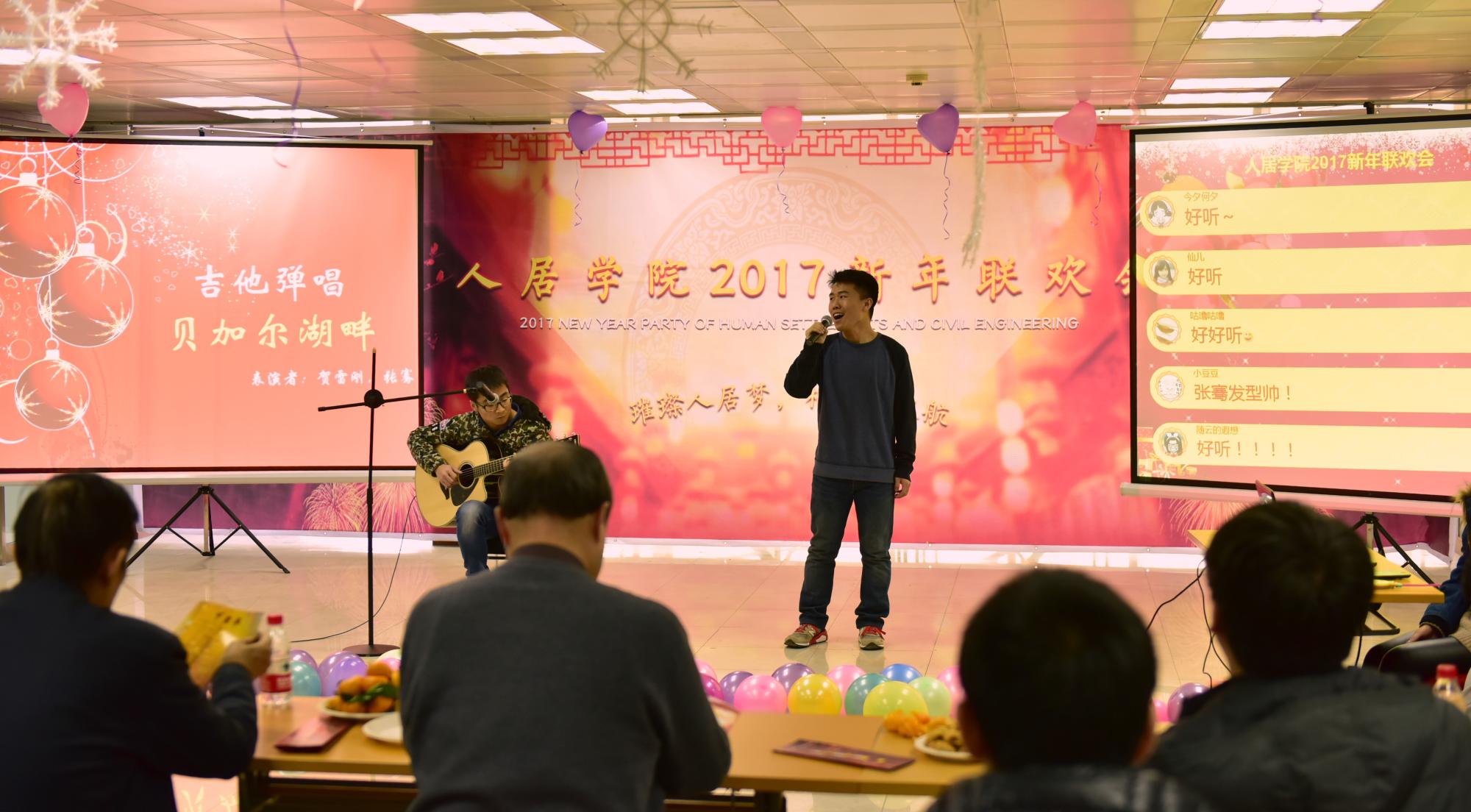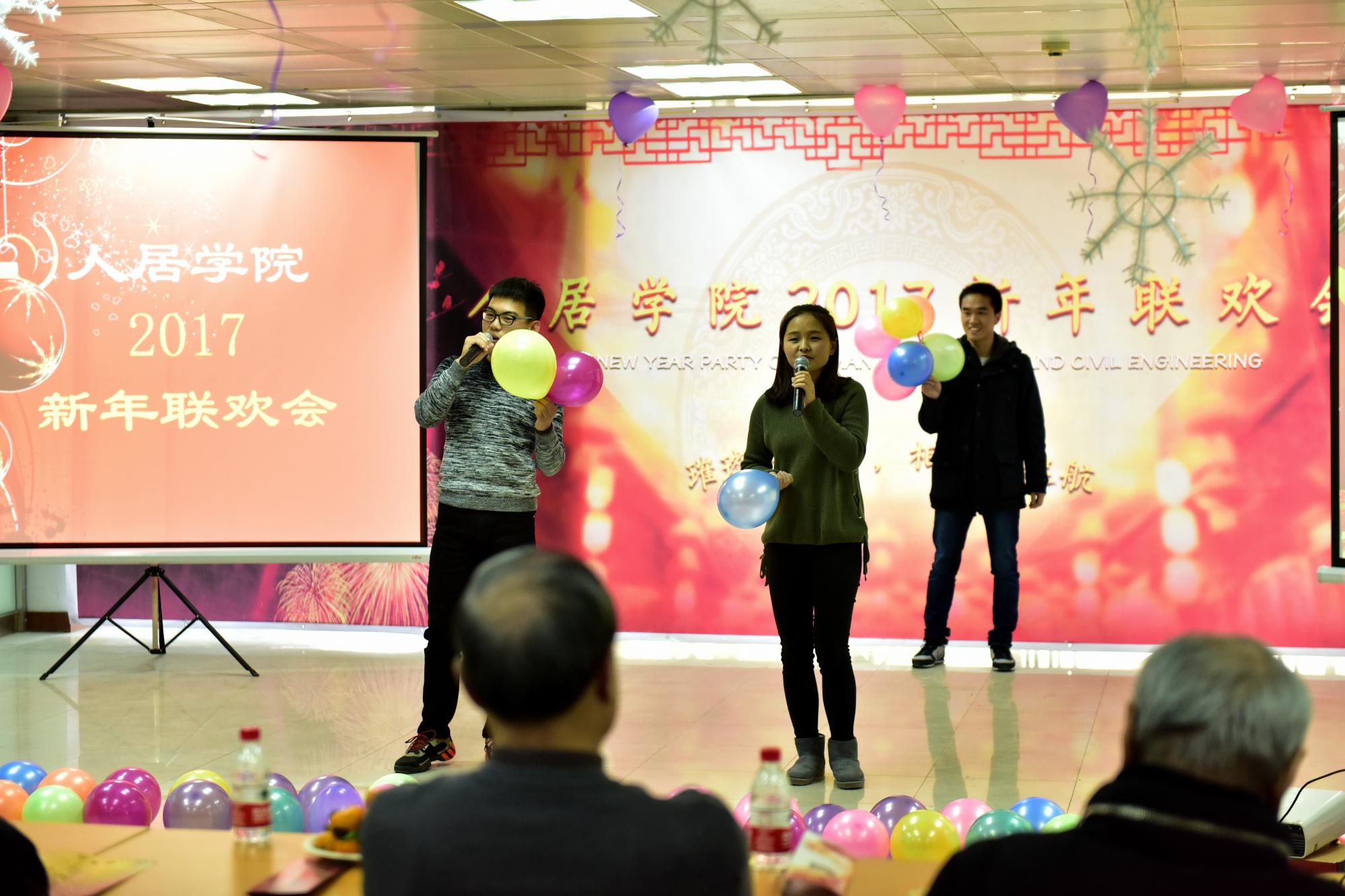 当晶莹的白雪轻轻散落在广袤的大地上;当圣诞老人满载幸福的讯息光临人世间,又一年即将在此画上圆满的句号,崭新的一年也即将到来。听吧,新年的脚步声变得逐渐清晰;看吧,美好的2017正热情地向我们张开臂膀。在这辞旧迎新的日子里,我们在这里欢聚一堂,让我们用动听的歌声和美妙的舞姿共同书写出青春的华美乐章去喜迎新年的到来。2016年12月28日下午,由人居学院党委主办、团工委研究生会承办的“璀璨人居梦,相约再起航”人居学院新年联欢会在曲江校区西一楼活动室圆满举行。人居学院院长孙九林院士、常务副院长顾兆林、党委副书记冯大鹏、副院长马建勋、周典、刘星以及各系教师、研究生莅临参加。