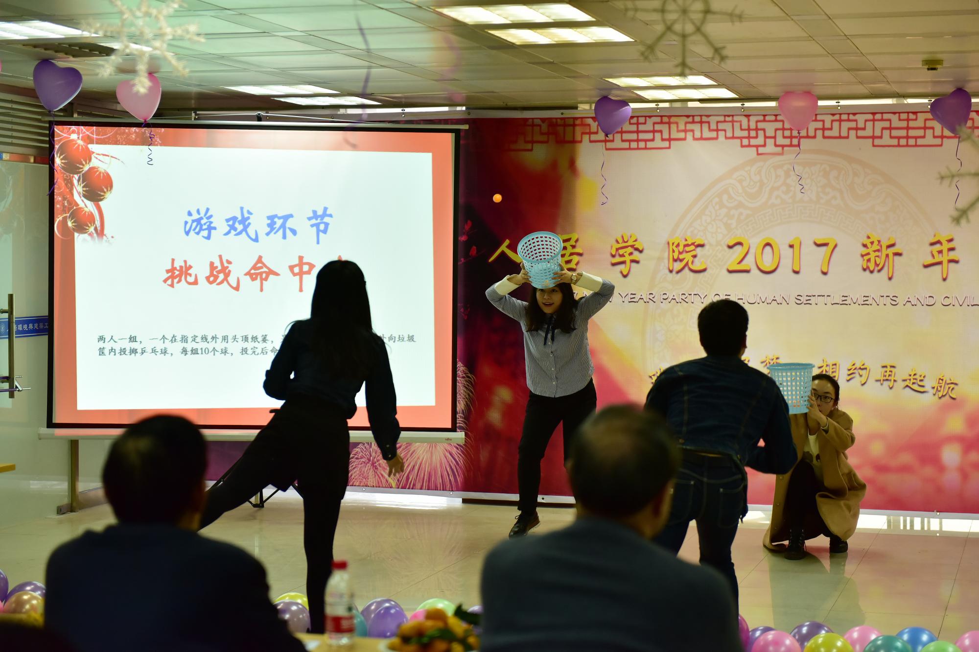 整个联欢会节目精彩纷呈,展现了人居学院师生多才多艺的青春风采和积极向上的精神面貌,将联欢会推向一个又一个高潮。节目中穿插的游戏环节,设立了多种游戏项目,老师和同学们积极参与,在游戏中体会竞技的快乐,热闹非凡。《抢板凳》游戏不仅选手紧张,更让大家看得激动,场下观众不时传来尖叫欢呼;游戏《挑战命中率》展示了选手间的默契程度与动作协调能力;《眼神游戏》考验大家的随机应变能力,选手必须要互相观察彼此,很小心的看别人眼色行事,充满趣味,爆笑全场。激动人心的抽奖环节设置了幸运奖和一二三等奖,丰富的奖品让在场观众兴奋不已,尤其是微信墙和摇一摇抽奖令全场观众惊呼过瘾。最后由全场观众微信投票选出了本次联欢会节目的一二三等奖,分别为贺雷刚、张骞带来的《贝加尔湖畔》、刘俊、徐依蕾带来的《告白气球》和王姗、柯婷婷、岳腾、马蕾带来的《Shake it & greedy》。