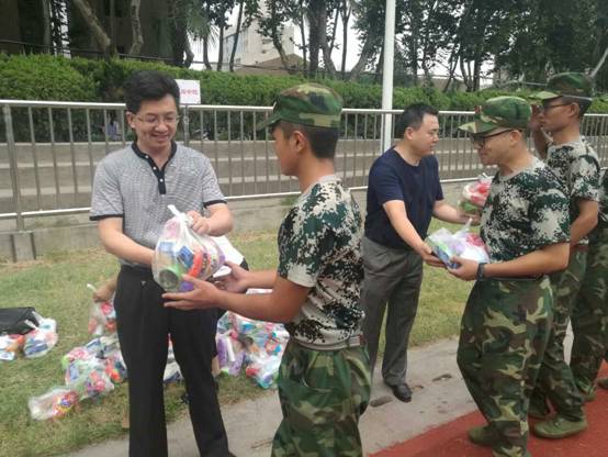此前,在8月30日,人居学院党政领导还在校田径操场集体慰问了参加军训的人居学院2016级的新同学和带队教官,学院领导鼓励同学们要克服困难,遵守纪律,努力取得军训的好成绩,为即将开始的大学生活开个好头。