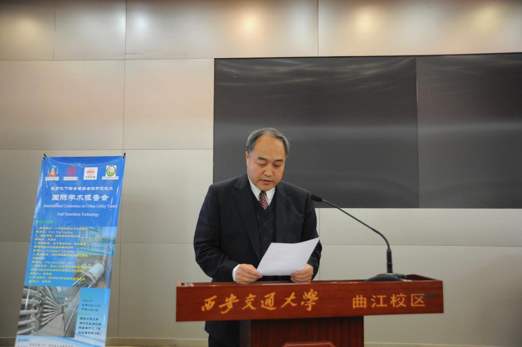 西安交通大学党委常委赵军武教授向大会致开幕词。2015年住建部组织地下综合管廊试点评审工作,确定包头、沈阳等10所城市进入2015年地下综合管廊试点范围,以此开篇迎来“十三五”以来我国城市地下综合管廊的发展机遇,同时提出了新的要求和挑战。西安交通大学土木工程学科积极响应国家政策,顺应发展态势,举办“城市地下综合管廊与非开挖技术国际学术报告会”,聚集该领域各位参会代表了解国内外最新的城市地下综合管廊开发利用的发展趋势,学习先进的地下空间开发利用的技术和理念,为以后的工作和学习提供帮助和支持,同时创立一个国际化平台促进交流联系,吸纳宝贵意见和建议。