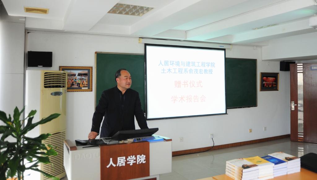 4月7日下午,恰逢双甲子校庆之际,人居环境与建筑工程学院俞茂宏教授向土木工程系本科生进行赠书并做学术报告会,学院党委副书记冯大鹏,土木工程系本科生、研究生和青年教师近80人参会,会议由副院长马建勋教授主持。