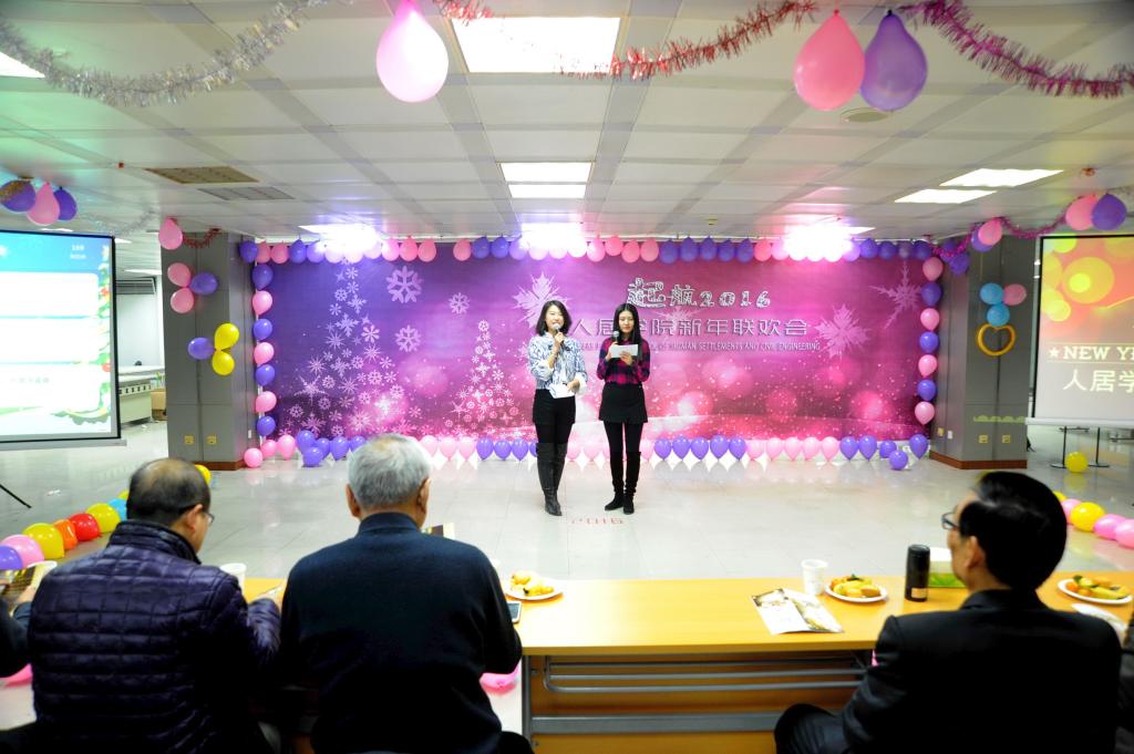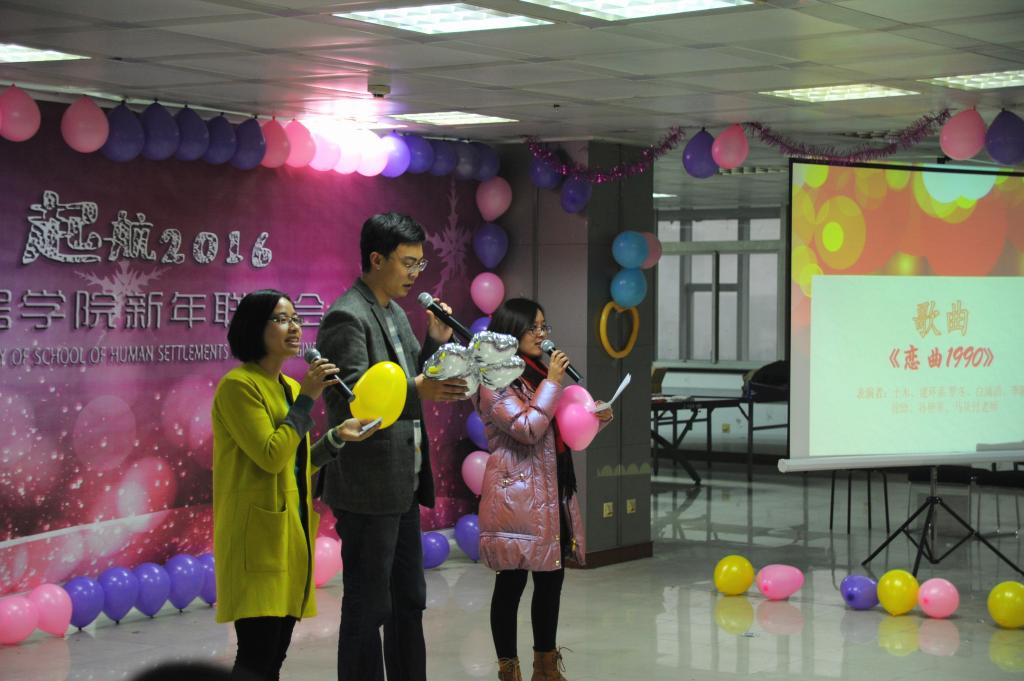 新年的钟声即将敲响,迎着冬日里温暖的阳光,在这幸福与温馨构成的舞台,在这欢声和笑语汇成的海洋,我们欢聚一堂喜迎新年的到来。2015年12月23日下午,由人居学院党委主办、团工委研究生会承办的“起航2016”人居学院新年联欢会在曲江校区西一楼活动室圆满举行。人居学院院长孙九林院士、党委副书记冯大鹏、副院长马建勋、周典、刘星以及各系教师、研究生莅临参加。