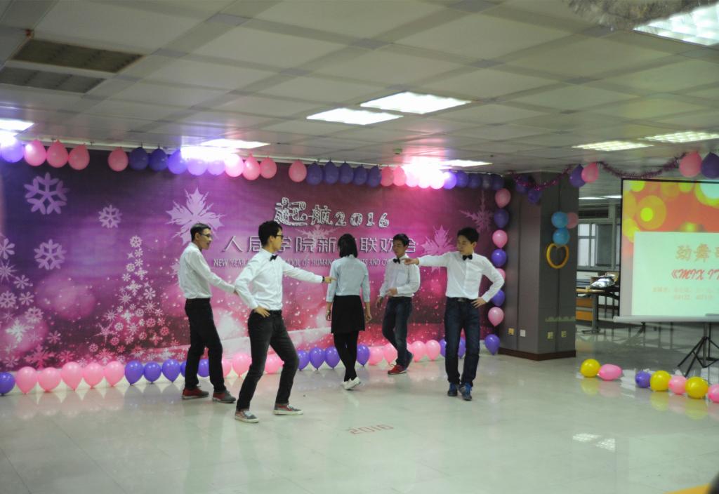 首先,由张恒睿、胡雪涛两位DANCE男神和他们的舞伴——来自能动学院的彭雨薇和机械学院的杨宛谕带来交谊舞《你被写在我的歌里》,欢快的旋律、优美的舞姿,瞬间点燃了现场师生的热情;吉他乐手贺雷刚、李尚力同学弹唱《莉莉安》,勾起了大家那年那时那天的回忆;“在我心中,曾经有一个梦”,环境系邱临静、张海伟、宁有丰、宗保云四位老师以一首《真心英雄》唱出了坚强、正直、勇敢的英雄梦;硕5122班李珂、曹盼盼同学的相声《古学新说》以幽默机智的语言为大家诠释了古典文学的新说辞;校吉他社欧阳可琛、贺思哲等同学带来的精彩曲目《平凡之路》和硕5071、5122班庞海燕、徐依蕾、李儒等同学的歌曲串烧《一次就好》赢得了观众的阵阵掌声;葛生斌、张博、李瀚瑛几位同学的舞蹈串烧《Mix it up》和王珊、李儒、曹盼盼同学的现代舞《喜欢你》更是劲爆全场、活力四射;吴一平老师以铿锵有力的朗诵诠释了《将进酒》的豪迈之气;张晓帆同学的笛子独奏《我的祖国》,以传统乐器的神奇魅力表达了莘莘学子的爱国情怀;硕5071和5122班精心编排的小品《原来是个坑》以幽默的表演方式让观众不时捧腹大笑;罗冬、白涌滔、徐晗三位老师合唱《恋曲1990》和硕4071班徐昊、 贺沅平、李宗文、尚世力几位同学的歌曲串烧演唱生动、感情真挚,博得现场观众的一片喝彩;“时间都去哪了,还没好好感受年轻就老了”,伴随着张博同学的《时间都去哪儿了》,联欢会也进入尾声。