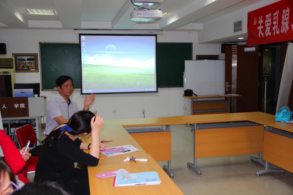 王俊鹏教授在讲座中主要介绍了乳腺疾病的症状、诊断、治疗、发展等,尤其是针对乳腺癌的早期诊断进行了详细说明。通过理论知识和实际案例的分析,王教授使与会教职工对乳腺保健的相关知识有了深刻的了解和掌握。在讲座过程中和结束后,王教授与在座教职工保持了良好的互动,亦针对大家提出的问题进行了很好的解答。大家纷纷表示此次讲座受益匪浅,希望学院以后可以多举办类似的活动。