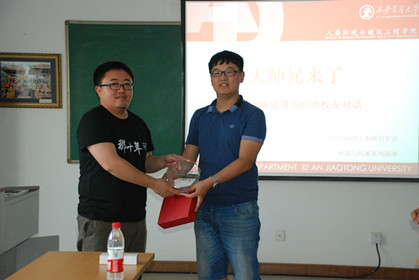 座谈会后,校友们参观了学院。并受团工委研究生会的邀请出席参加了学院研究生主题活动“对话与传承-大师兄来了”,跟学弟学妹们就建筑行业现状、建筑设计前沿、职业发展规划等话题进行了交流,为师弟师门提供了行业领域、就业发展的社会讯息,部分校友更表示其企业愿意为同学们提供实习和工作岗位。整个活动,气氛轻松热烈,师兄弟情谊浓烈。在研究生会同学送上代表学弟学们热情的纪念水晶以及热烈的掌声中,校友活动圆满结束。 ?