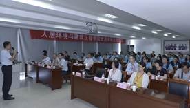 “人居环境显特色,学科交叉谋发展。”人居学院副院长许领教授向营员们详细介绍了人居学院的创立特色、师资队伍、总体定位、人才培养体系等。人居学院下设一个研究院和六个研究所,来自各个系所的主要负责人与全部营员参加了本次开营仪式。午饭后各系所主要负责人带领营员参观了科研成果展板并进行了面对面的互动交流。