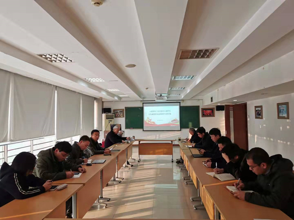 11月21日上午,人居学院在曲江校区第一会议室,召开二级党委中心组会议,对十九届四中全会精神进行学习研讨。会议由党委书记杨鹏主持,党政联席会成员、系所主任和教工党支部书记出席参加。