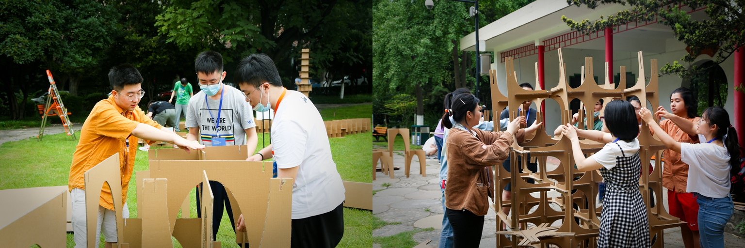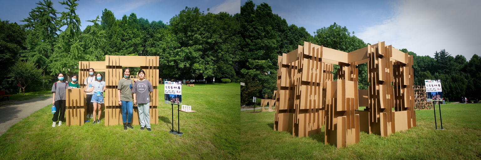 6月29日,2020西安交通大学人居建筑建造设计节在兴庆校区东花园举行。作为2020夏季小学期实践课程之一,本次建造设计节以“城市与建筑设计预见力——西安2100”为主题,要求仅使用箱纸板进行搭建,由单元体叠加而成,使结构自承重且具有稳定性,并在不破坏原有场地的基础上满足对话场所、建造清晰、结构稳定、经济适用、以人为本等五大条件,做到材料、空间、结构高度统一。