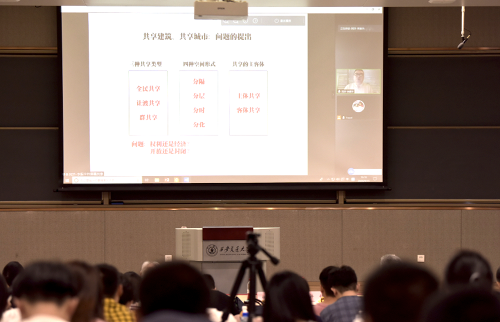李振宇教授通过在线视频分享了共享建筑和共享城市的研究。报告分析了共享信息时代背景下,共享建筑学理论提出的缘由,指出全球信息化背景下,建筑和城市的设计策略出现了五对新矛盾,从生存、秩序、功能,到多元、生态和共享,剖析了不同时代下形式追随内容的社会形态和设计理念,分享了基于共享建筑学理论的优秀设计案例。