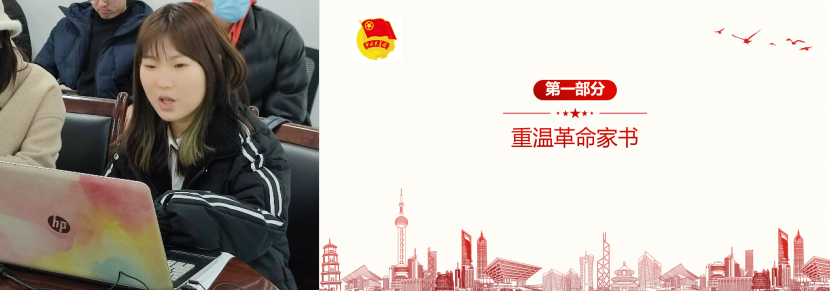 会议第一项议程,张康杰同志带领全体成员重温革命家书。通过观看史砚芬、左权烈士家书的诵读视频,支部同学们感受到了革命先行者们为找到救国救民的道路而献身时的坚毅。彼时,百姓在痛苦中煎熬,新中国的影子还看不见,中国共产党还只是很弱很小的组织。就是在这样的时刻,一群革命先行者,经过在黑暗中苦苦的探索与追寻,毅然加入到共产党的队伍中来。高一杰同志在谈及自己的感想时引用了毛主席的一句诗,“为有牺牲多壮志,敢教日月换新天。”他表示,正是有革命先烈们舍生忘死,前赴后继的牺牲,才能有今天的新中国。我们应当铭记先烈的功绩,继承先烈的精神,努力将他们留下的新中国建设得更好。团支部书记张康杰提到,处在和平年代的我们,虽没有经历过战火弥漫的岁月,但这种舍小家而为大家的革命精神应当被铭记和传承,认真科研学习,为把祖国建设成社会主义强国贡献出自己的力量。