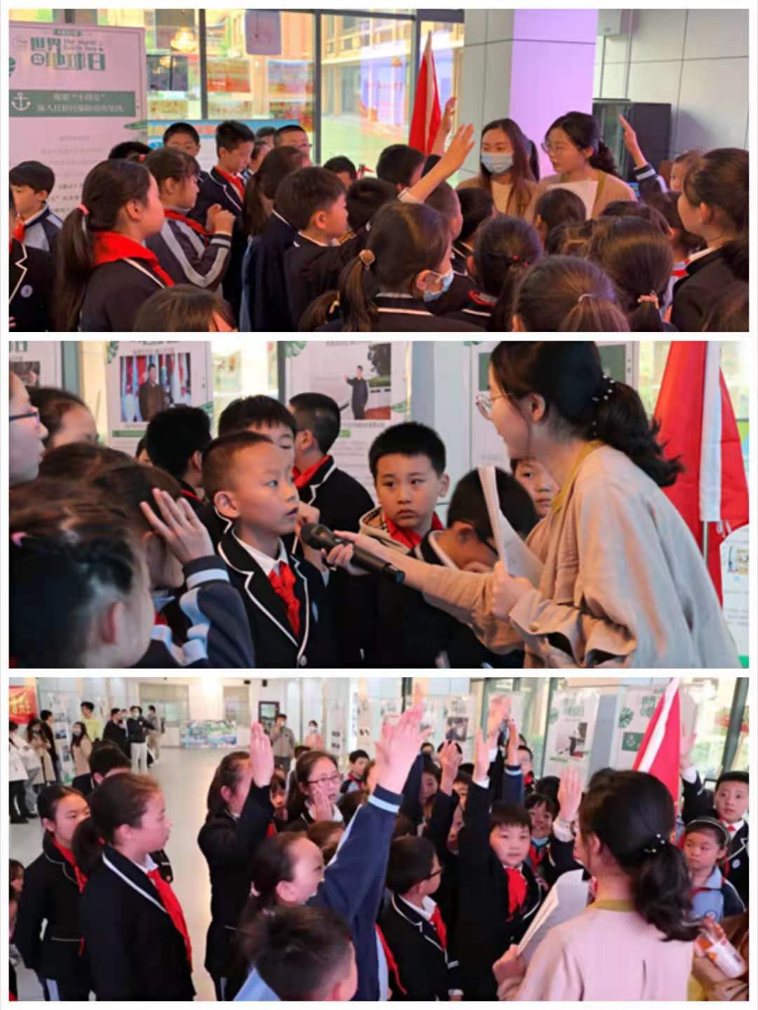 活动一开始,交大附小秦楠主任给少先队员们做了动员讲话,介绍了本次活动的基本安排。环境科学党支部书记吴一平强调,他对于附小同学们始终铭记一年前总书记来校考察的场景感到欣喜,并带领大家重温了一年前习近平总书记莅校讲话精神,指出我们要牢记总书记嘱托,听党指挥跟党走,在新征程上创造属于我们这代人的历史功绩。研究生要专注科研,创新探索;小学生们要认真学习,开拓眼界。随后,不同年级的小朋友分组观看展板。