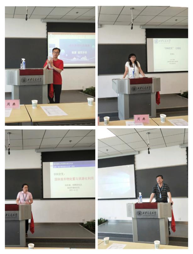 随后,由副院长许领主持举行首届“青年教师成长沙龙”。建筑系甄蒙老师、土木系王剑云老师和地环系徐芙清老师分别结合自己的研究方向讲述了各自对学科交叉和学术创新的理解,顾兆林院长结合自己的科研合作经历做点评分析和总结,鼓励各位青年教师加强沟通交流和学科交叉。