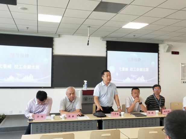 校工会副主席弋景峰讲话。弋景峰指出,青年教师是学校教师队伍重要组成部分,因此,青年教师工作委员会的成立具有重要意义。青工委成立后的具体工作将围绕关注青年教师个人成长展开,包括加强青年教师的思想教育、推动开展科研项目、关注青年教师的生活等多方面。寄语青年教师,共同为个人发展,学院发展以及学校发展而不断努力。