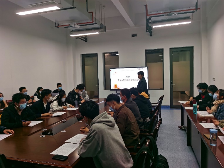 会议第二项,人居学院团工委书记陶泽宇通过主持人向大家传达了自己对于各位同学的深切期望。在老师的勉励下,同学们纷纷表示将会倍加珍惜研究生代表这一身份,努力做好学院联系广大研究生的纽带,在学院党委的领导下,在学院团委的指导下,继续根植同学,服务同学,为更加辉煌的明天奋斗。