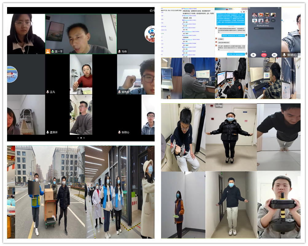 吴一平教授在疫情发生后,对自己带领的“生态水文”团队提出了要“培养组内各成员之间的协作能力与团体凝聚力,坚持科研与运动并进”的居家工作形式。建立“生态水文组-同心战疫”学生微信群,线上提醒疫情防控核酸检测,线下保障团队基本科研需求,困难问题及时沟通,确保课题组无人掉队。吴一平教授团队一直以来都有集体运动的安排,疫情期间学生的活动范围缩小,吴一平教授提出组内成员每日“运动打卡“模式、并交流心得,做到科学锻炼,陶冶身心。阴晓伟、周彤等作为学院志愿者前往弘润楼搬运抗疫物资、为同学们协调获取科研资料;马帅建立团队健康统计表,每日核查。团队建设,让整个课题组同学精神饱满,斗志昂扬开展抗疫、学习和生活。他们在互帮互助、积极奉献、携手抗疫的路上共同前进。
