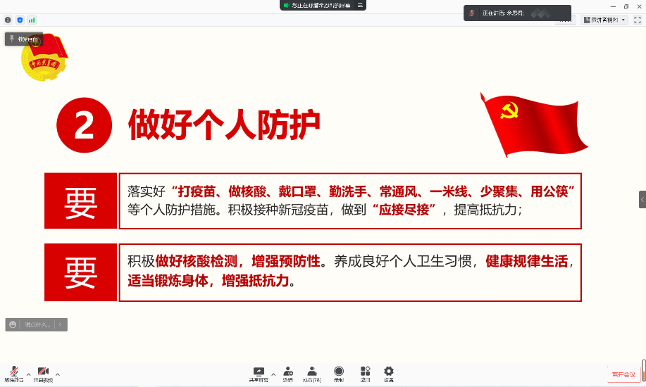 第三部分成员共同学习全校师生疫情防控倡议书,提出应该从思想不松懈、做好个人防护、非必要不外出、不聚集少流动的倡议,支部全体成员表示赞同。