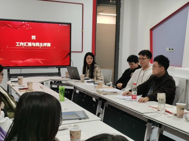 在全体党员同志开展完批评与自我批评后,会议进入第四项,工作汇报与民主评测,党支部支委在工作汇报中指出了党支部半年来工作的不足,并对党支部提出了下一步的发展展望。