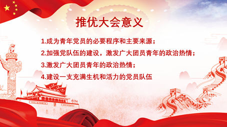 推优工作是团组织工作中的一项重要的日常性工作,而深入做好“推优”工作,则是党组织赋予共青团的光荣职责,是共青团组织充分发挥党的助手和后备军作用的重要体现。通过推优工作,让优秀团员加入党组织,这对于加强和改进党团建设实施固本强基工程具有十分重要的意义。在本次推优工作中,坚持高标准、严要求,保证推优质量,坚持公开、公平、公正的原则。本次推优工作充分发挥了主动精神,根据青年特点和团支部实际,考虑到疫情原因,本来线下的一些流程并没有省略,而是调整为在线上继续进行,这也使得本次会议程序化、规范化、制度化。