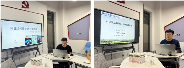 会议第二项,由秦思宇组织召开“科研经验分享第二期”的学术沙龙。本活动旨在帮助班级同学们了解大家的科研情况,分享科研经验和技巧,提升科研能力,去年12月份举办了第一期活动,由班级建筑方向的张盼、土木方向的张芮、建筑环境方向的马真迪和环境方向的张冠同学分别做了报告。本次活动邀请了马真迪和王健同学进行了中期答辩的经验分享,为大家提供建议和参考;并由王健和张广创同学分别以“第四纪气候变化与年代学——洞穴次生碳酸盐研究”和“科研压力及调解、科研思路简述”为主题进行了分享,帮助大家了解了环境科学对于国家发展和建设的重要性,并引发了同学们的积极讨论,反响热烈。