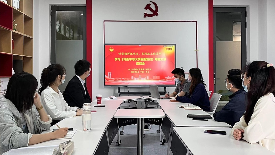 直播结束后,由团工委学生兼职副书记郭瑾萧主持,组织召开座谈会,分享关于《习近平与大学生朋友们》一书的学习体会,回顾习近平总书记与大学生们交往、交流、交心的故事,深刻感受习近平总书记的思想伟力和人格魅力。