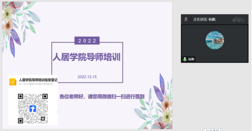 以提高研究生培养质量为目标,以研究生和导师为核心,以强化过程管理为重心,人居学院联合研究生院于12月15日,运用线上形式召开了学院全体研究生导师培训会。常务副院长许领主持会议,研究生院学位办陈永华主任作关于“研究生学位论文质量保障体系建设现状与政策解读”的专题报告。