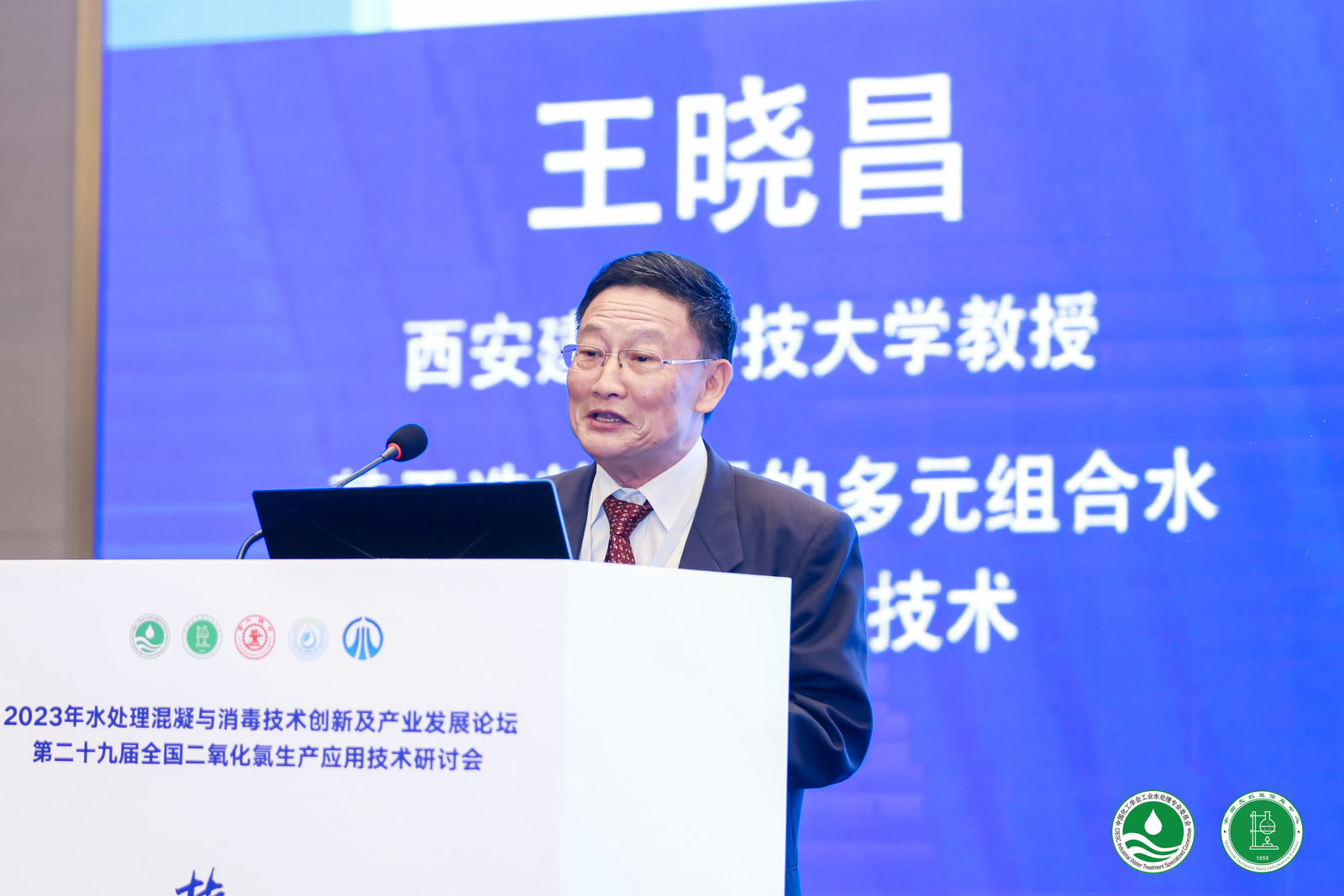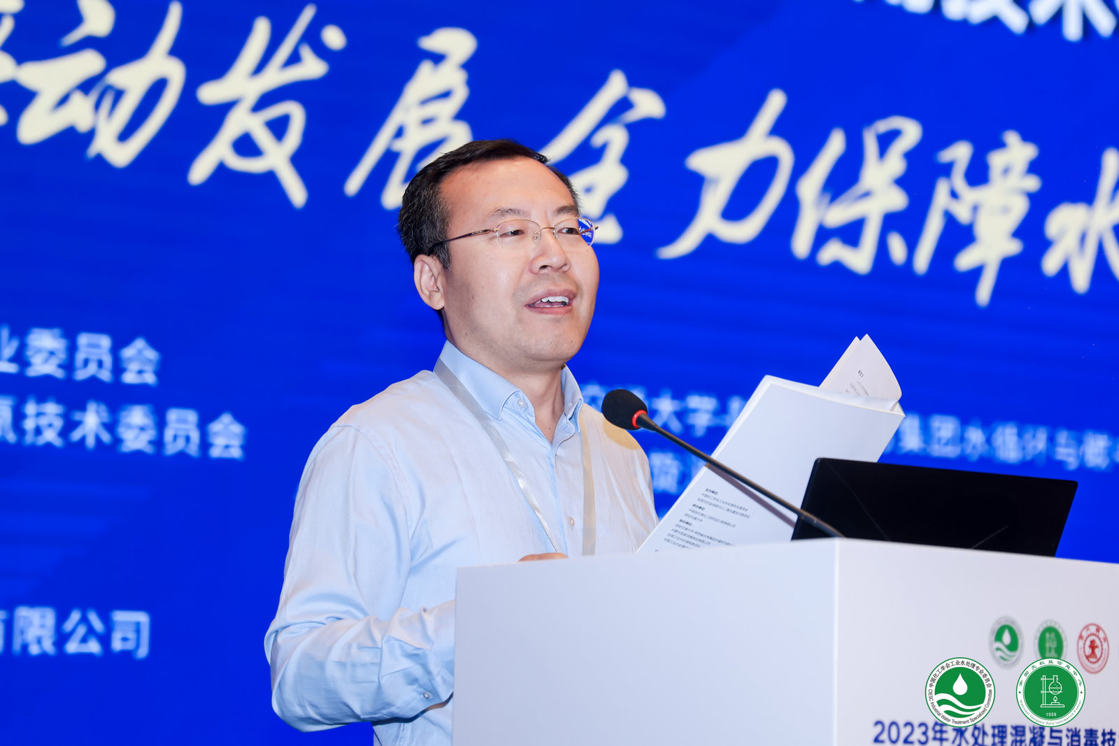 王晓昌教授作了题为《基于造?;炷亩嘣楹纤头纤砑际酢返谋ǜ妗M跸淌诖友蟹⒈尘啊⒃怼⑸璞秆兄萍肮こ逃τ玫确矫妫芙崃送哦佣嗄昀垂赜谠炝;炷际醯难芯砍晒牍こ贪咐?,该技术有力促进了我国西北地区多产业的绿色、可持续发展,助力“双碳”目标的实现。王晓昌教授指出,混凝虽然是传统水处理技术,但基于混凝技术衍生的创新型处理工艺仍具有很大的发展潜能,希望学者们凝聚起来,共同推进混凝技术的革新与发展。