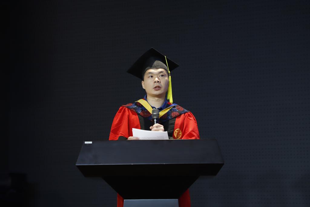 研究生导师代表孙中豪结合自身经历悉心叮嘱大家,要始终心怀交大、感恩交大,努力传承和弘扬西迁精神;要积极乐观、迎难而上,勇敢面对各种挫折与挑战;要不断求索、开拓创新,做一名勤于思考、敢于探寻的闯将。