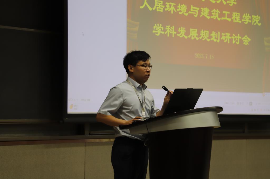 人居学院副院长张猛对人居学院总体学科发展情况做专项报告,汇报了人居学院既要“法上乎”又要“够得着”的学科规划总体情况,并代表学院表达了补足短板,精准谋划,打好学科建设攻坚战的决心和信心。