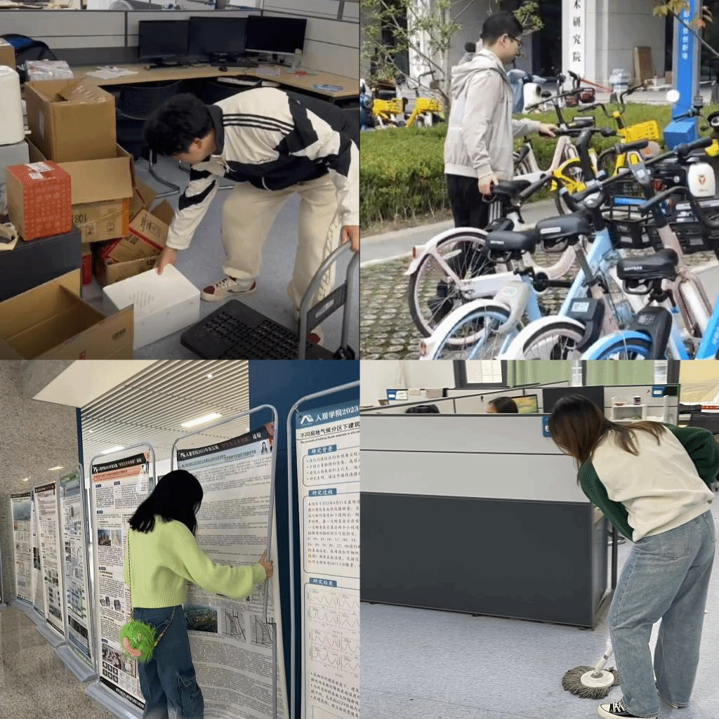 2023年10月10日在人居学院辅导员薛同宣以及相关班委的组织下针对19号楼进行全面打扫,本次活动共50余人参与。同学们分工明确,打扫彻底,大家忙碌、阳光的精神面貌令老师们赞不绝口。