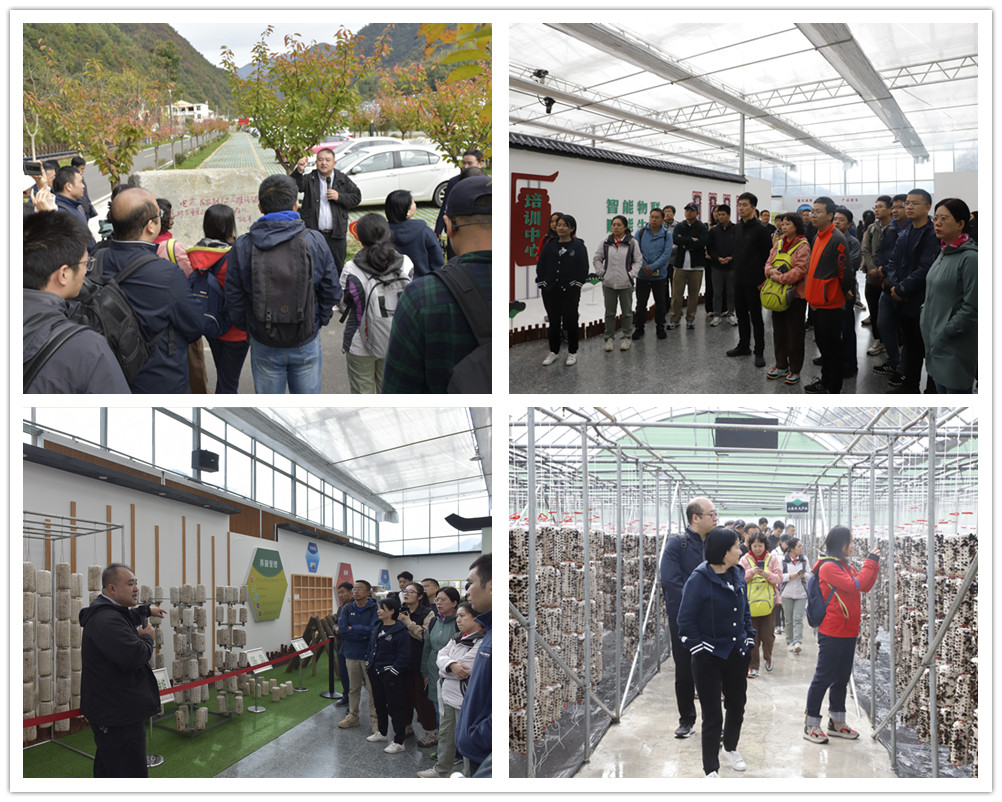 在柞水县小岭镇金米村,全体成员在金米村包联干部舒铭带领下参观了木耳展览馆、智能联栋木耳大棚,实地学习感悟习近平总书记对“小木耳大产业”的重要指示以及“脱贫摘帽不是终点,而是新生活、新奋斗的起点”的脱贫攻坚重要论述。详细了解了金米村近年来以习近平总书记的亲切勉励为强大动力,推动木耳产业“提档升级”,在党组织领导下,推动金米村脱贫致富的建设成果。