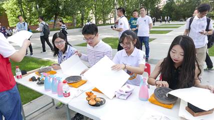 活动伊始,志愿者们首先依托复仿制瓦当实物为大家介绍了其背后丰富的文化象征与内涵,并现场演示了中国传统技艺——拓片的制作,赢得同学们的阵阵赞叹。演示完毕后,不少同学积极地加入到了亲自动手制作拓片的互动体验活动中来。在志愿者的悉心指导下,体验者们在宣纸上轻轻扑打,沾墨,匀墨,将2000多年前先辈们在瓦当上留下的图案与寄托,小心翼翼地印在眼前四方大小的宣纸上。同学们足不出户,便领略到了中华传统文化的独特魅力。