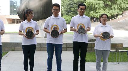 最后,同学们亲手制作的拓片陆续完成,陕历博的老师对大家的作品进行了认真细致的点评,并由现场观众评选出了三个最佳拓片,志愿者为他们颁发了陕历博专属纪念品。