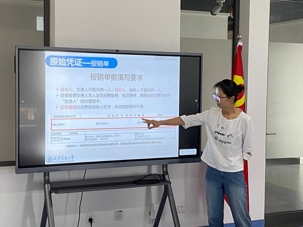 会议的另外一个环节是“先锋支部、星火讲堂” 继续开讲。此次党课分别由环境系副系主任苏军伟老师与系秘书杨柳老师为大家讲授。苏老师用丰富的历史材料、图文并茂地讲述了党在百年历程中经历的重大事件。从新民主主义革命、社会主义革命、改革开放和社会主义现代化建设,到中国特色社会主义新时代,经历了艰难险阻、改革开放、经济腾飞。中国共产党的百年历史是用鲜血、汗水、智慧与力量写就的百年,是在苦难中铸就的辉煌。杨老师针对师生员工们在日常工作中遇到财务报销方面的问题,精心准备了演示文件,为大家做了财务报销政策与操作流程的讲解与指导,解答了同志们的疑惑。