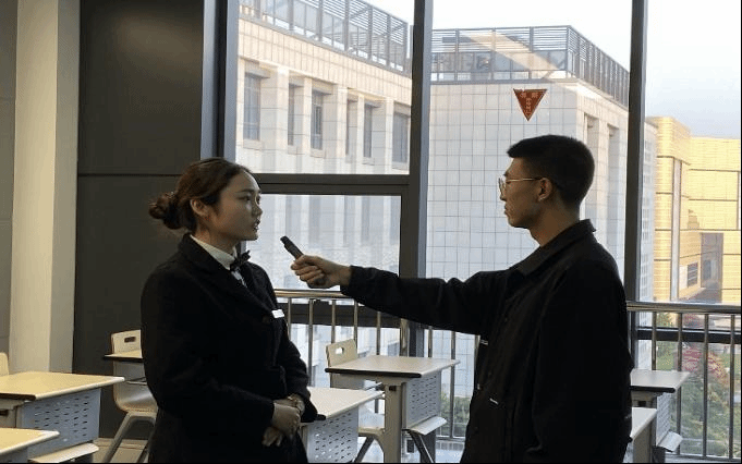 同学问道:”我们二次西迁,您作为基础建设者的其中一员。有没有什么感到非常光荣的时刻?”刘勇回答道:“其实一些很小的地方,我们都可以感受得到。比如在我们的一些出入口。有时候有些师生对我们的工作是不理解的,有时候也会发生一些冲突什么的。但是我们还是秉持着服务至上的理念,像我们每天的接驳车或者班车,路过我们的岗位,我们的工作人员都会立正敬礼。有一些师生也会在车上给我们回礼。我们当时心里就已经是比较满足了,我们的工作还是得到了大多数人的理解。我觉得这样就可以了。比如我们的疫情期间,每一天都要进行查证测温,对校外境校外人员的进出进行登记。但是这么长时间以来,我们的创新港可以说,它作为一片净土,一例疫情事件都没有发生。我觉得这就是让我们开心,同学们放心的事情。”