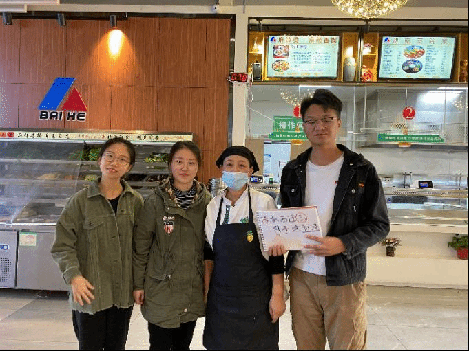 活动的最后人居学院2020级专硕党、团支部的同学们走进朗园C区的食堂,对在麻辣烫窗口辛苦工作的阿姨进行了一次专访,就餐厅工作人员的工作、生活、家庭进行了简单的了解。