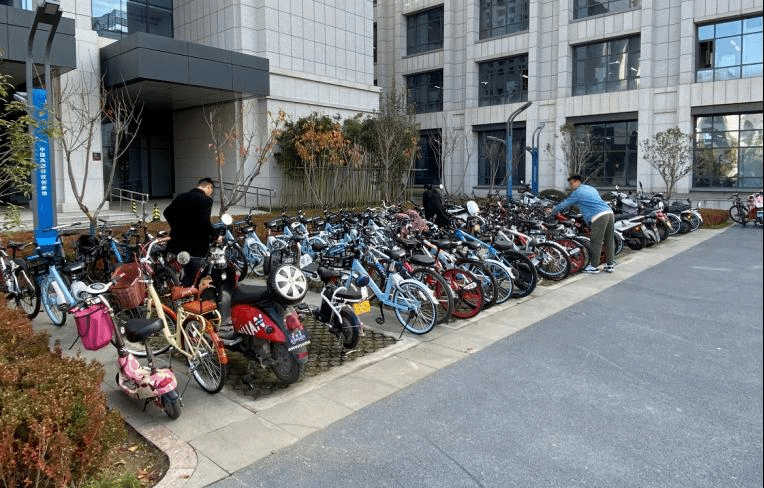 整理自行车停车位,展现创新港新面貌。在卫生劳动包干期间,学硕党、团支部也组织同学在早晨、中午和下午三个时间段,对创新港19号楼前的停车位进行整理。由于上下课时间段,自行车停车较多,特别是共享单车,这导致了楼前的停车位会出现乱停乱放的现象。同学们对自行车进行排放、整理,同时,引导正在停车的同学正确停放自行车。